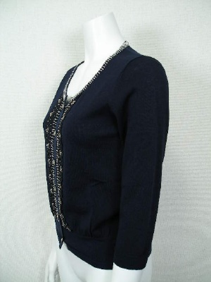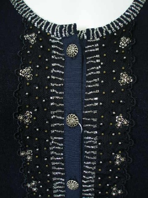 レースやビーズ使いがアンティークな雰囲気のカーディガン。
