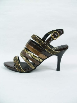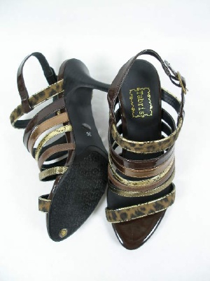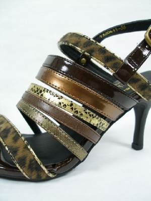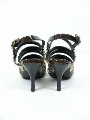 ストラップはブラウン系で色んな色を使っています。足の甲を覆うストラップとバックストラップでしっかりホールドして履きやすい。
