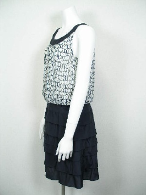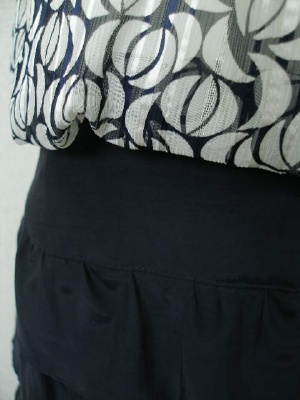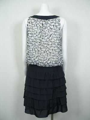 シフォンのブラウスとティアードスカートを合わせたようなワンピース。スカート部分はキュプラ56%・綿44%でやや光沢があります。裏地は全体に付いているので、一枚でもお召しいただけます。