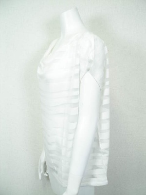 白×シースルーの手書き風ボーダーの、ゆるカットソー。全体的に透けますので、インナーによって雰囲気が変わります。