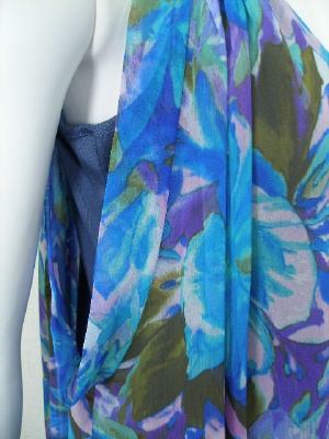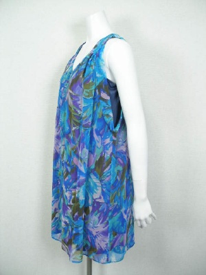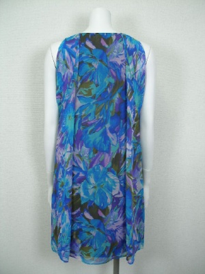 南国っぽい花柄のシフォンワンピース。アームホールは広く開けて、インナーのカットソーを見せるデザイン。インナーはネック部分で繋がっており、裾はワンピースとほぼ同じ長さです。
