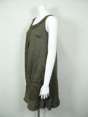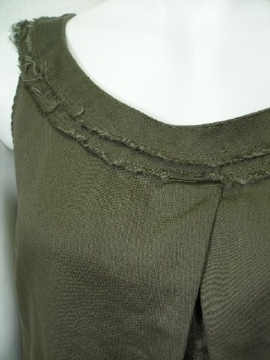 ネックラインや裾に切りっぱなしの生地を重ねて、カジュアル感を出したワンピース。裏地なし。