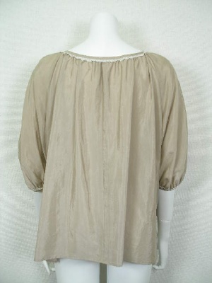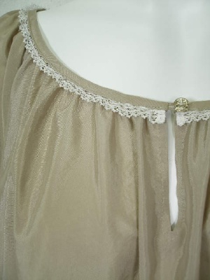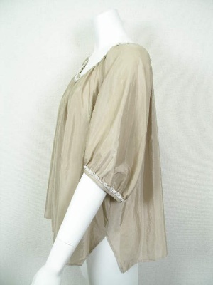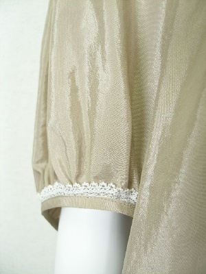 ふんわりしたフェミニンなブラウス。ネックラインと袖口の小さなレースもカワイイ!裾の両サイドはV字にスリットが入っています。