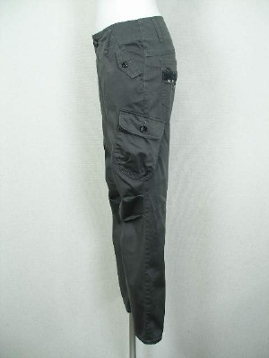 膝のタックやテーパードしたシルエットが今年らしいカーゴパンツ。斜めにつけたサイドのポケットが腿を目立たなくします。ストレッチの効いた穿きやすいパンツです。