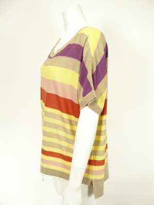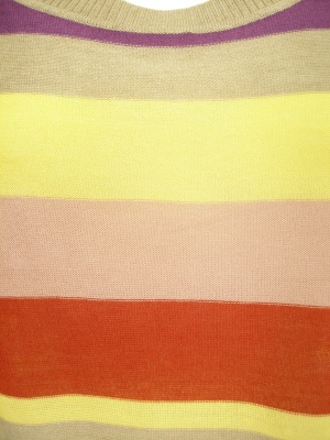 黄色や紫など今年注目の色を使ったマルチボーダーのゆるニット。