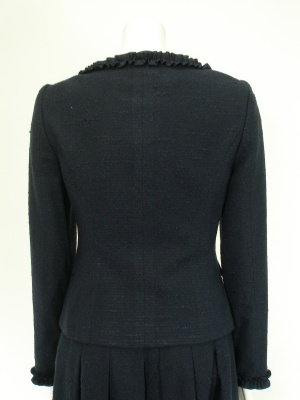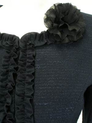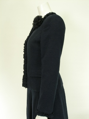上品なノーカラージャケット。(細かいフリンジのトリミング)