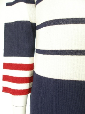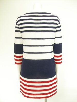 トリコロールカラーのニットチュニック(ミニワンピ)。