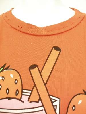 ネックや袖口などにダメージ加工を施していて、古着のように仕上げています。