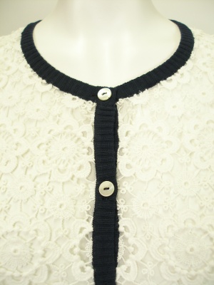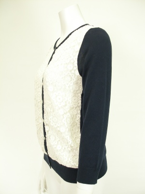 レースがフェミニンなニットカーディガン。
