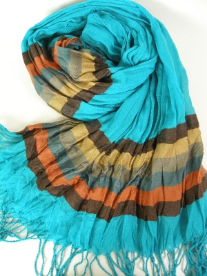 ボーダー柄でアクセントを付けたシワ加工ストール。