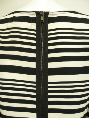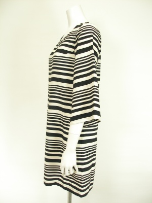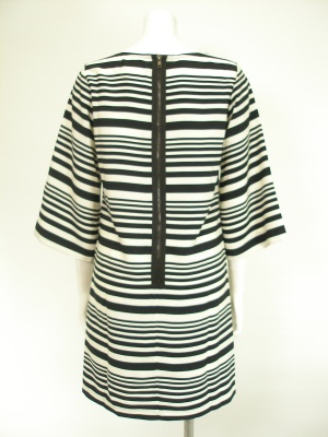 後ろのジッパーとワイドなお袖が特徴のボーダーワンピース。