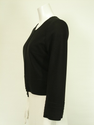 袖口と裾が5段になったノーカラージャケット。