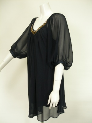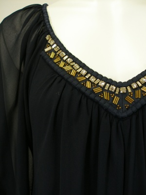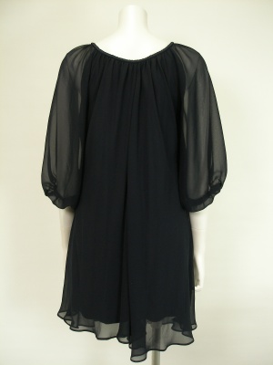 胸元のビジューやふんわりしたお袖がフェミニンな印象のシフォンワンピース。