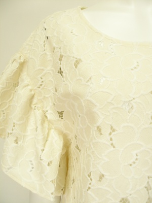 お袖はギャザーでふんわりさせ、身頃も裾にゴムを入れてふんわり仕上げています。