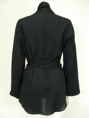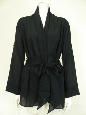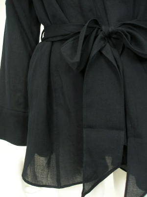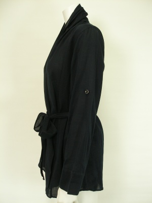 リボンベルトでウエストマークする薄手のカーディガン。