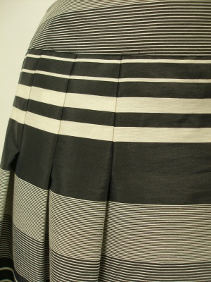 腰のタックを7pほど縫い止めているので、広がりすぎずコーディネートしやすいデザインです。