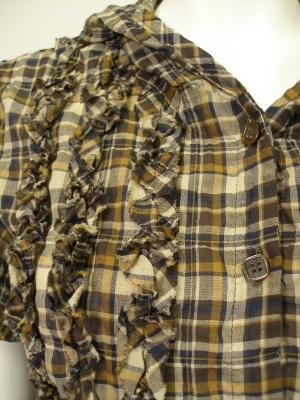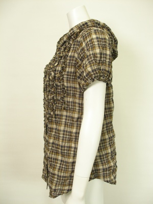 フリルとフードで可愛く仕上げたカジュアルなチェックシャツ。