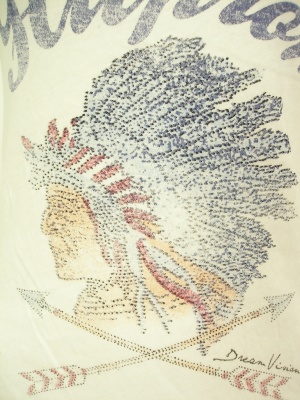 ネイティブアメリカンなプリントのTシャツ。