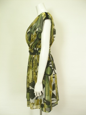ウエストでキュッと絞ったエレガントなワンピース。