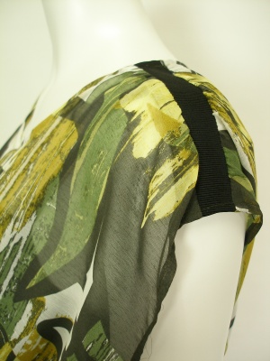 抽象的な柄がプリントされた透け感のある生地。