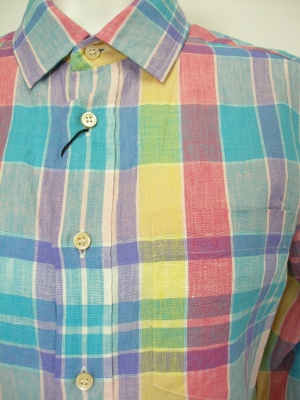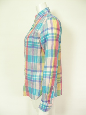 フレンチリネンのチェックシャツ。