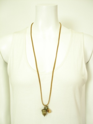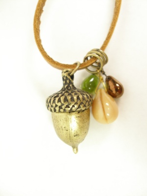 どんぐりのトップが可愛い革紐ネックレス。