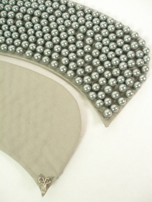 綿の生地にパールをびっしり縫い付けています。