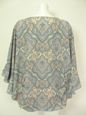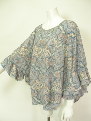 繊細なエスニック柄のポンチョ風ブラウス。