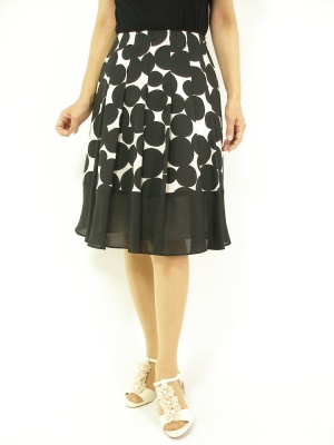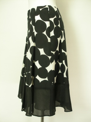 裾を透け感のある生地に切り替えたドット柄スカート。