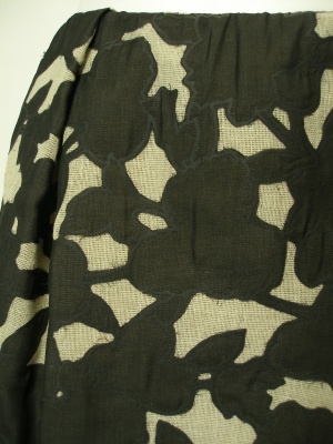 麻×綿のナチュラルな生地に、花柄にカットしたシルク生地を重ねています。