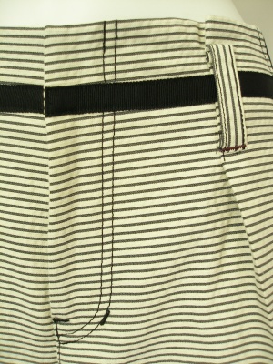 センタープレスで裾はダブル、裏地はありません。