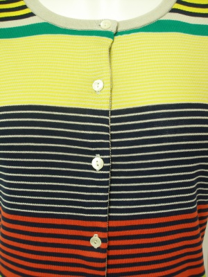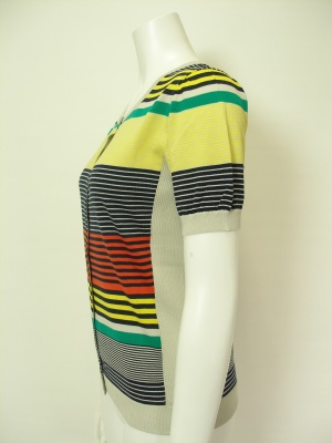 脇はリブ編みで、さりげなくスッキリ見えるデザインです。
