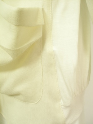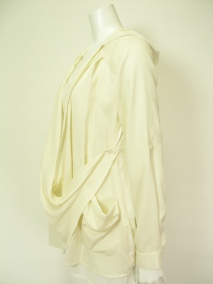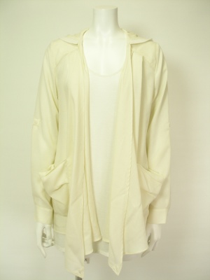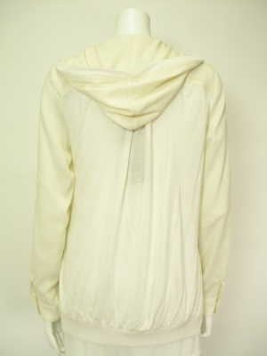 前身頃とフードは布帛、後ろ身頃は薄手のジャージー(レーヨン70%ポリエステル30%)です。