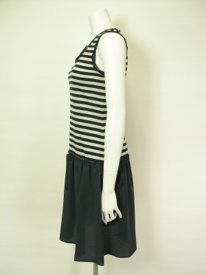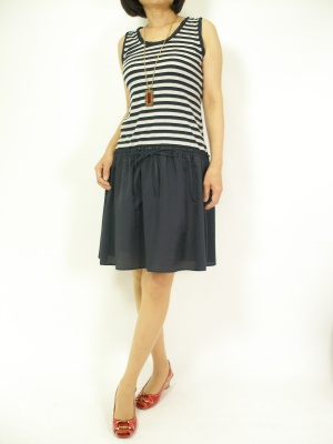 テレコのタンクトップとギャザースカートのトリックワンピ。