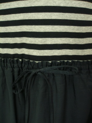 上下のつなぎ目にゴムを入れてあります。リボンは飾りで絞 れません。