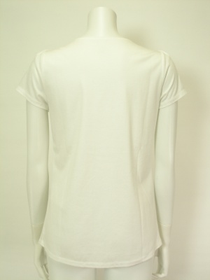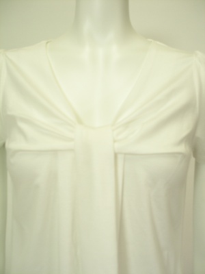 胸元のリボンのようなデザインがフェミニンなカットソー。