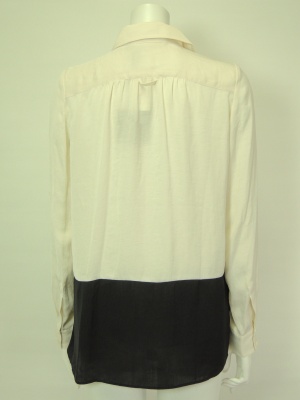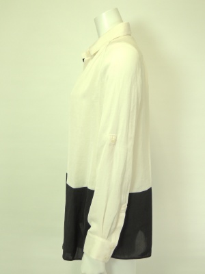 バイカラーの切り替えがオシャレなシャツ。
