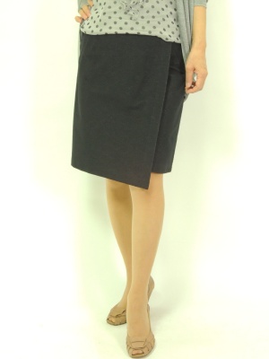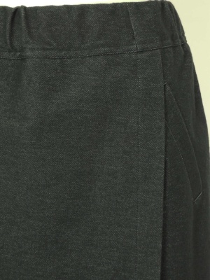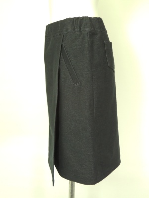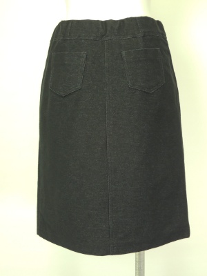 デニム風のストレッチ素材で、ウエストはゴムの穿きやすいスカート。