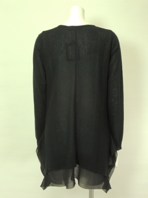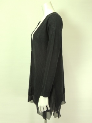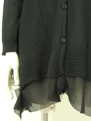 動くと揺れる裾のシフォンが特徴のニットカーディガン。