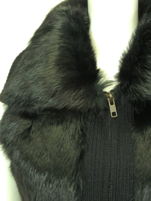 ラビットファーとリブ編みニットのベスト。