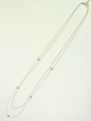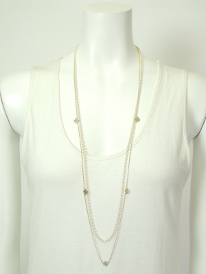 スワロフスキーの付いた小さなお花モチーフのネックレスと白のビーズのネックレス、2本セットです。