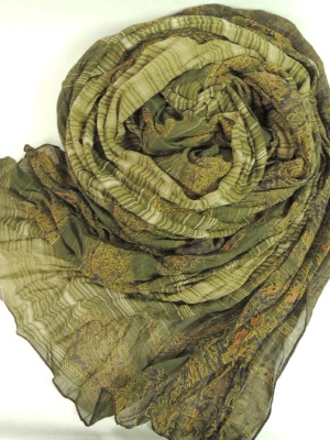 ペイズリーとボーダーのナチュラルで渋めのプリント。