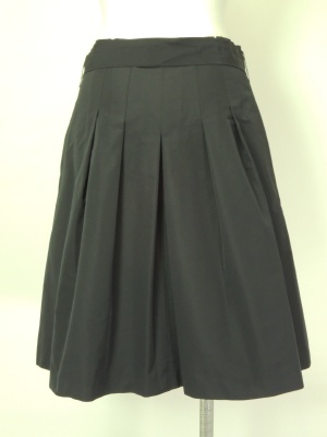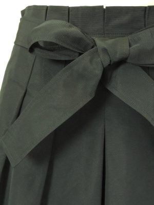 ウエストのタックとリボンベルトが特徴の、ハリのあるスカート。