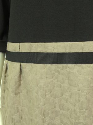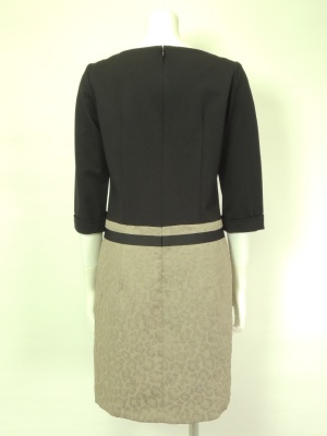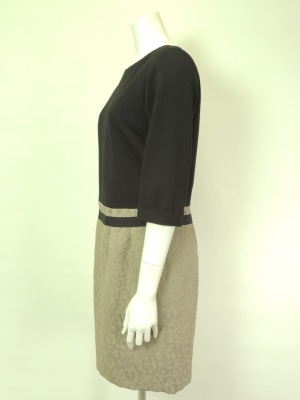 トップスは黒のジャージーで、スカートはアニマルの地柄(ポリエステル100%)。