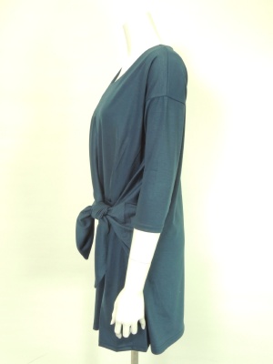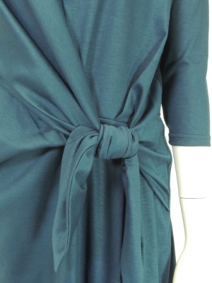 結び目に向かったギャザーがポイントのカットソーワンピ。