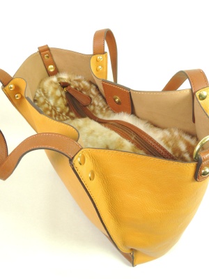 フェイクファーのインバッグは、ストラップを付けてポシェットとしてもお使いいただけます。
