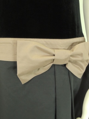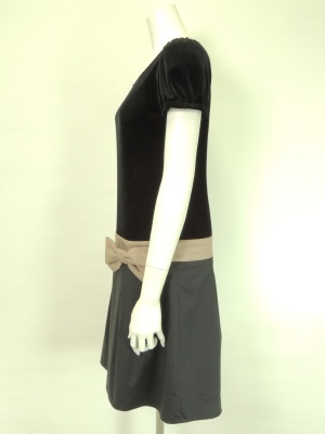トップスはベロアでスカートは光沢のある生地(ポリエステル73%綿27%)。