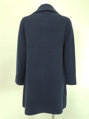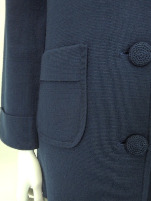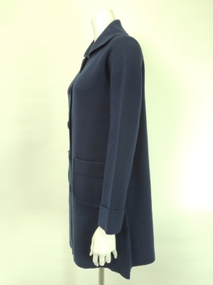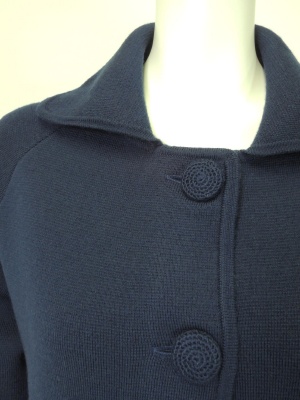 丸い襟やパッチポケット、くるみボタンなどがレトロな雰囲気のニットコート。
