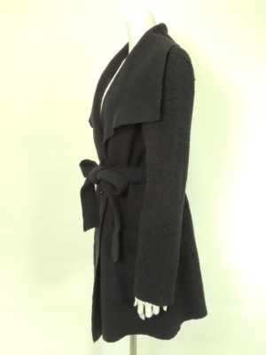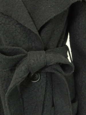 ベルトでウエストマークすると、大きな襟と広がった裾がウエストをより細く見せてくれます。