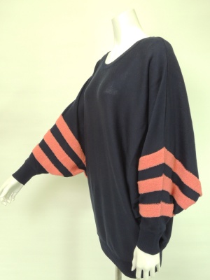 モコモコしたブークレニットのボーダーが可愛い、ハイゲージのドルマンニット。